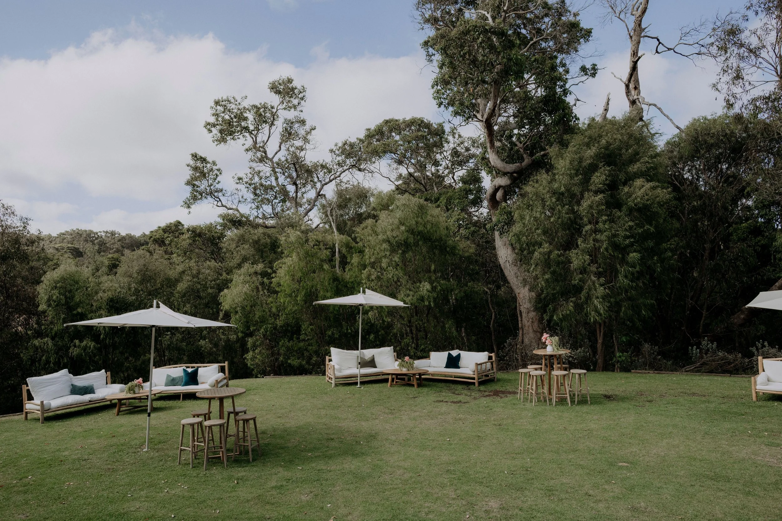 Framed by native bush and dappled with coastal light, each part of the property flows effortlessly into the next — from vows beneath the trees to long dinners and dancing under the night sky.