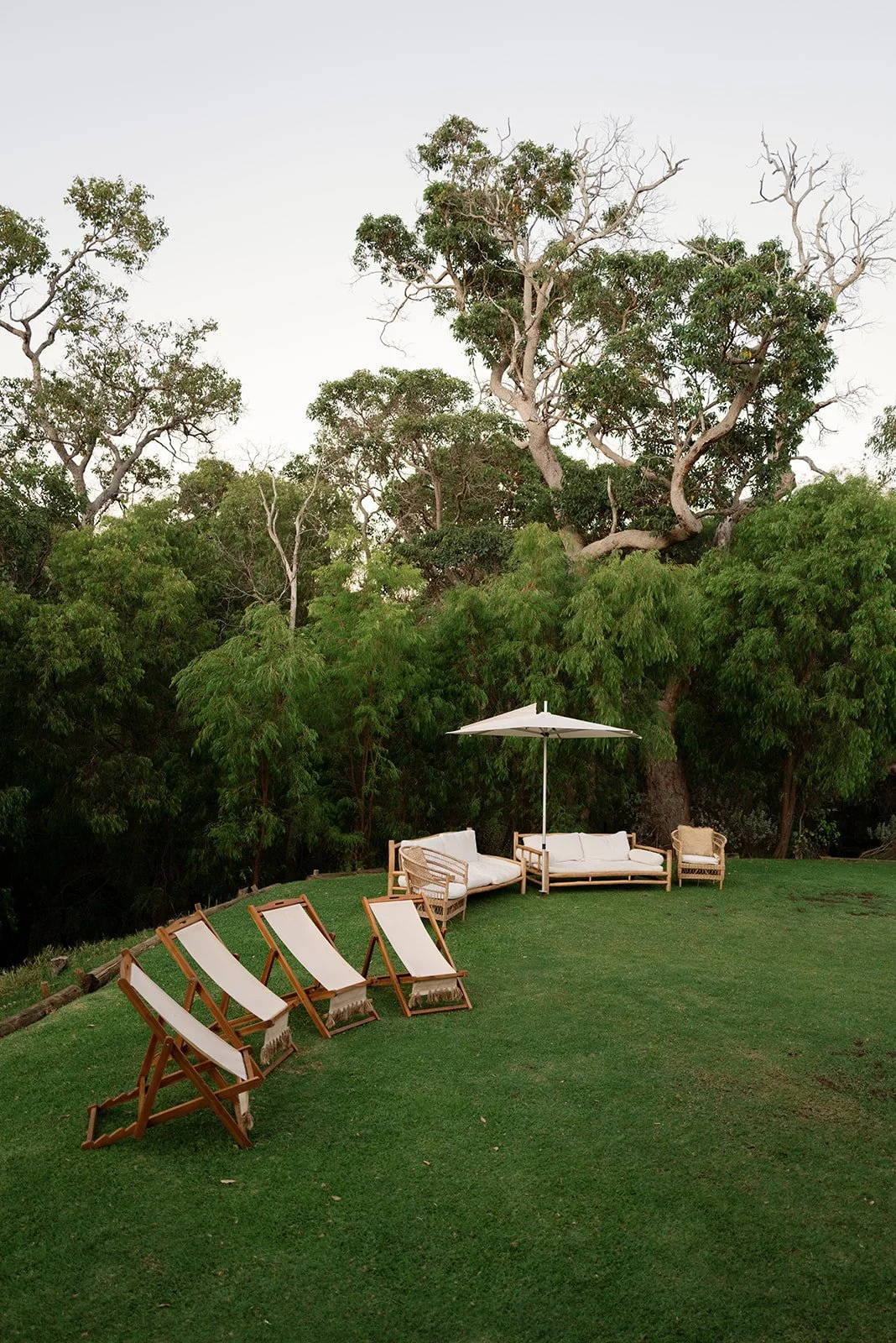 The Ceremony Lawn overlooks Meelup Brook, with silkie chooks nearby and Highland cows in the distance. It's private, peaceful, and can be styled as simply or creatively as you like.